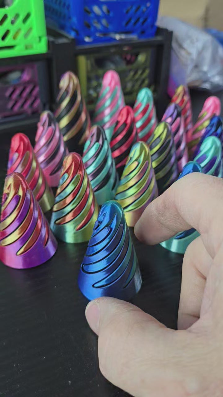 Fidget spinners are compact, handheld devices designed to rotate smoothly around a central bearing. These medium-sized spinners offer an ideal balance of portability and extended spin time, making them suitable for desk use, travel, or casual entertainment. The spinning motion can provide a satisfying sensory experience and may help with focus during work or study sessions. Available in various colors and finishes, they're durable enough for regular use and appeal to both collectors and those seeking a simple, screen-free fidgeting tool.